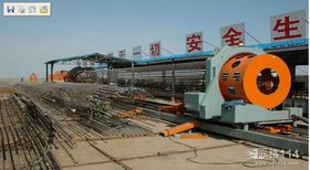 山東魯源全自動(dòng)鋼筋籠滾焊機(jī)中鐵十九局施工現(xiàn)場(chǎng),滾焊機(jī)調(diào)試完成